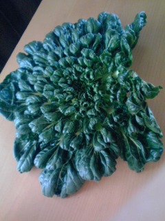 10年以上前から、益子から有機野菜と卵を宅配してもらっている。 普段は、肉も魚もあまり食べないゆるゆるベジタリアンの私だが、この宅配野菜のお陰で、日常のメニューにはこと欠かない。 その時々の旬の野菜が梱包されてくるので、箱を開けるまで何が入っているかわからない。天候のぐあいで、予定していた野菜が全滅してしまったり、収穫の苦労などのメッセージが添えられている。スーパーで買う野菜とは、愛しさと美味しさが別格だ。 今日は久しぶりにじゃがいもと、待望の大根。ほうれん草に小松菜にからし菜。そして座布団のようなのがター菜。これで直径50cmです。まるで緑色のお花のようで、食べるのがもったいないくらい。 せめて元気な野菜を食べて、つぶれそうな心を勇気づける毎日です。
