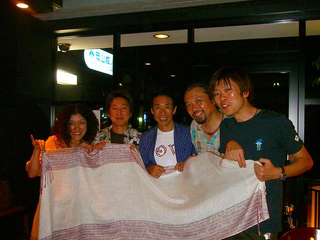 会場を後に打ち上げのお店へ。 こじんまりとしたレストラン。トイレの中は「ミニ大原美術館」のようだ。ビュッフェの絵のポスターを見て、ホッとひと息。子供の頃から幾度となく見てきた絵が、今日は一段と冴えて見える。故郷というものが、急にいとおしく感じられる。 ワサブローさん、弦太さん、新岡さん、領くん、後援会の幹事の方、お手伝いいただいた方、お客さまを交えて、それぞれ話に花が咲く。ワサブローさんには、本当にいろいろな話を聞かせてもらった。そしてたくさんの言葉を戴いた。 私は正直、今まで自分のことを歌手だと思ったことがない。歌手などと名乗るには自分が拙すぎて恥ずかしい。うろうろと迷っているどーしようもない人間、くらいに思う。 でも、この日だけは歌手でいていいかな、と許してしまった。でないと、共演してくださったワサブローさんに失礼だ。 ワサブローさんから戴いた言葉を胸に抱いて、この先の長い道を歩いて行こう。どんな困難も、乗り越えていけるような、そんな勇気ももらえた気がする。 ワサブローさん、本当にありがとう! (写真は東京から来てくれた昌子さんが撮ってくれました)