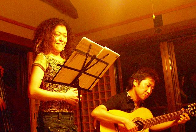 翌日、メンバーと夕方待ち合わせて足守へ。ここでまたまたミュージシャンのライブの予定だ。 去年、京都高台寺でのコンサートをセッティングしてくださった杉原さんのご自宅の蔵。満月の下、お庭でのライブもいいねと言っていたが、やっぱり雨が降ってきた。 そう言えばさん太ホールの本番前も、バケツをひっくり返すような大雨。いよいよ領くんの雨男が確信されたこととなった。いつもMCのネタを提供してくれて有難いのだが、実はこれは濡れ衣だ。私のライブにはモレなく領くんが一緒なのだから、多分私+領くん+岡山=雨とかいう図式なのだろう。 庭を濡らす気持ちのいい空気のなか、ライブが進んでいく。2曲歌わせてもらって終了する頃には、雨も大分治まってきた・・・と、しばらくお弁当やビールをいただいたりした後、帰ろうとするとまた大雨だ。う〜ん、「晴れの国おかやま」なんだけどなあ。 杉原さん、いい時間をありがとう。お手伝いいただいた方もありがとうございました。 (昌子さん、写真をありがとう)