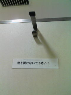 世の中いろいろと思い通りにいかないことがある。 休日、溜まっている買い物に行こうと、買い物メモを持って自転車で出かける。買うものは、トイレットペーパーだったり、ビールだったり、パスタ、葱、猫のトイレの砂、コットン、歯磨き粉・・・とにかく食料品とか日用品の類。 コレはココで買おうと行くと、昨日まであったはずの商品がない。思っていたメーカーのものが見つからない。ひとつ前に立ち寄った店の方が安かった・・・何もかもがハズレな時というのは、まったくあたふたとペダルをこぐだけで、結局何の用も済まないものだ。 近頃は、思ったとおりに買い物が出来た時に喜ぶことにしている。過剰な期待はストレスの元だ。これが「歳をとる」ということか。 ついでに添付した写真は、銀座のあるアーケードのトイレに入った時。ココにモノを掛けられないからと言って、他に荷物を掛けるところはないのだ。 でもこれって、どこからどう見ても「モノを掛けるため」のものですよね?