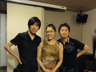 弦太さんの「梅干しの唄」も歌ってもらいました。最近、客席で弦太さんと一緒に口ずさんでいらっしゃるお客様をお見かけします。だいぶ浸透してきましたネ。 領くんの呼びかけで写真をパチリ。ナゼか同じポージングの二人に挟まれました。