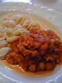 凝視すると結構グロいトリッパ(写真@)。 これをセロリの葉、ローリエ、ワインなどで煮ていくと、いい香りがして次第にきれいなツヤが出てきました。みにくいアヒルの子が、お風呂に入ってお姫様に生まれ変わった感じ。(写真A) みじん切りのセロリや玉ねぎ、にんじん、トマト缶などと共に煮ていきます。ひよこ豆もくわえて、トリッパが柔らかくなるまで7〜8時間くらい。例のとおり、一晩置いたほうが美味しいようです。 お店のトリッパには、パンチェッタが入っていたようなので入れてみましたが、煮込んでいくうちに形がなくなってしまいました。美味しそうな色のために、パプリカパウダーを加えたのはオリジナル。 オレッキエッテというショートパスタと共にいただきま〜す。(写真B)