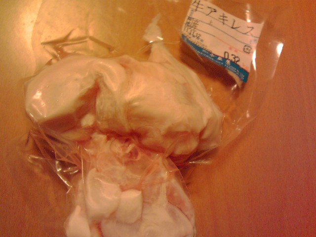 牛スジにハマっていることは、前にも書いた。 今年になって、スジ以外にも、ハチノスや豚テール、豚足など、ゲテモノの調理にいそしんでいる。 夜な夜な我が家の台所では、コトコトと何やら内臓関係のものが煮込まれてゆくのだ。ヒッヒッヒ。料理の域が、ヘンタイに近づいているのを認めざるを得ない。 さて牛スジだが、いろんな店で購入できる。100g65円のものから、150円のものまで試してみる。それぞれ値段も違えば、その肉質も違う。 少しばかりヘンタイぶりを披露すると、高いものがいいとも限らないのだね。赤身だけのものよりも、たまにコリコリの腱のようなものがあってもいい。かと思うと、脂がギトギトで、これを除去するのに苦労することもある。 ネットで注文した、脂完全除去がウリのものは、さすがに良い肉質だった。調理もしやすく臭みも少ないので、次に解凍する分は、味噌を使わず塩味で煮込んでみようと思う。それでも100g80円ほどか。ヒッヒッヒ。 これには、その除去した脂の部分だけを、さらにサービスで付けてくれるのだが、何度も茹でこぼした後、糸こんにゃくと共に、チリチリになるまで甘辛く煮詰めてみたら、ご飯がススムおかずになった。 さて、それに気を良くして、今度はアキレス腱を購入してみた。 さすがにこれは参考資料が少ないが、関西おでんには欠かせないもののようで、意外に愛好家もいるのだね。まずは愛用のシャトルシェフでじっくり煮込んでみることにする。どんなものになるかは、改めて報告します。ヒッヒッヒ。