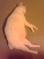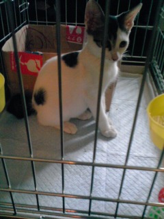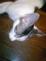 モトちゃんが亡くなってから1ヶ月。このまま一人と一匹の生活に慣れていくのは、まるでもう恋も諦めた老人ではないか。失恋の痛手を癒す方法は、ただひとつ。新しい恋をするしかない。 ということで、猫の里親の会に行った。そこで出会ったチビ猫が、一昨日からウチで暮らし始めている。 名前はクニヨシ。 幕末の浮世絵師である歌川国芳は、今年が没後150年。大の猫好きで、猫の絵をたくさん描いている。幕府によって役者絵や美人画が禁制になれば、猫に着物を着せて描いた。「東海道五十三次」ならぬ「猫飼好五十三疋」では、猫の姿を克明に描き取った国芳の、並々ならぬ猫への愛情が伝わってくる。 今日あたりから、ケージから出して様子を見てみるが、先住猫のマッコリとも上手くやっていけそうな予感。 元気いっぱいで動きまわっているので、ブレない写真を撮るのは大変。やっと寝ているところをパチリ。国芳の描いた猫ソックリでしょ。この筆遣い。墨の濃淡。なかなか名作なのである。 細くてちっちゃい。7.5キロのマッコリが、牛に見えてきた。