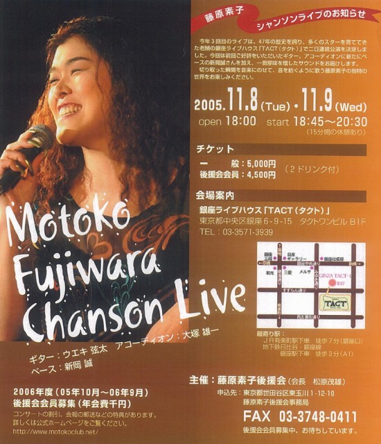 - 藤原素子 シャンソンライブ 2006,3,7 銀座TACT