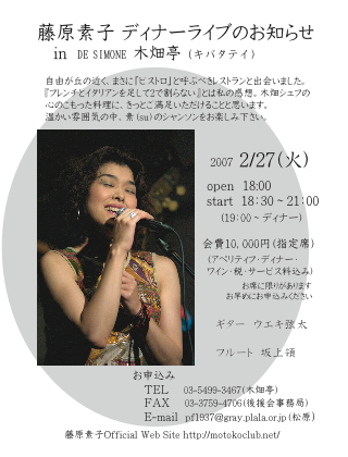 - 藤原素子 シャンソンライブ 2006,3,7 銀座TACT