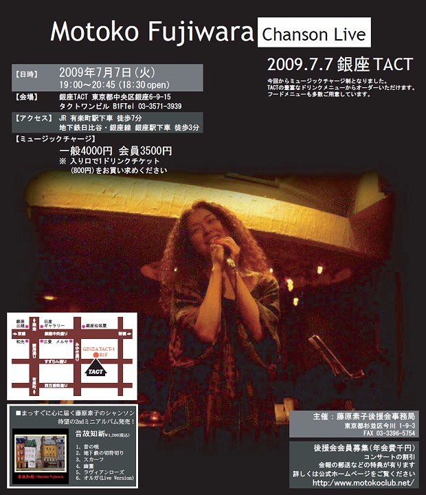 - 藤原素子 シャンソンライブ 2009,7,7 銀座TACT